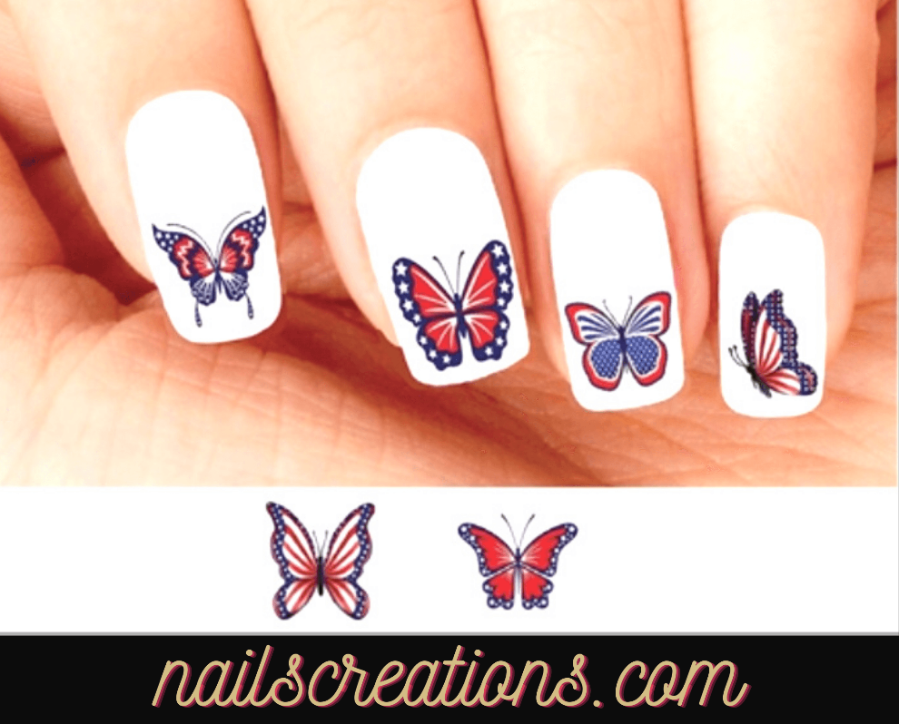 Nail Stickers 4th of July Butterflies Waterslide Nail Decals