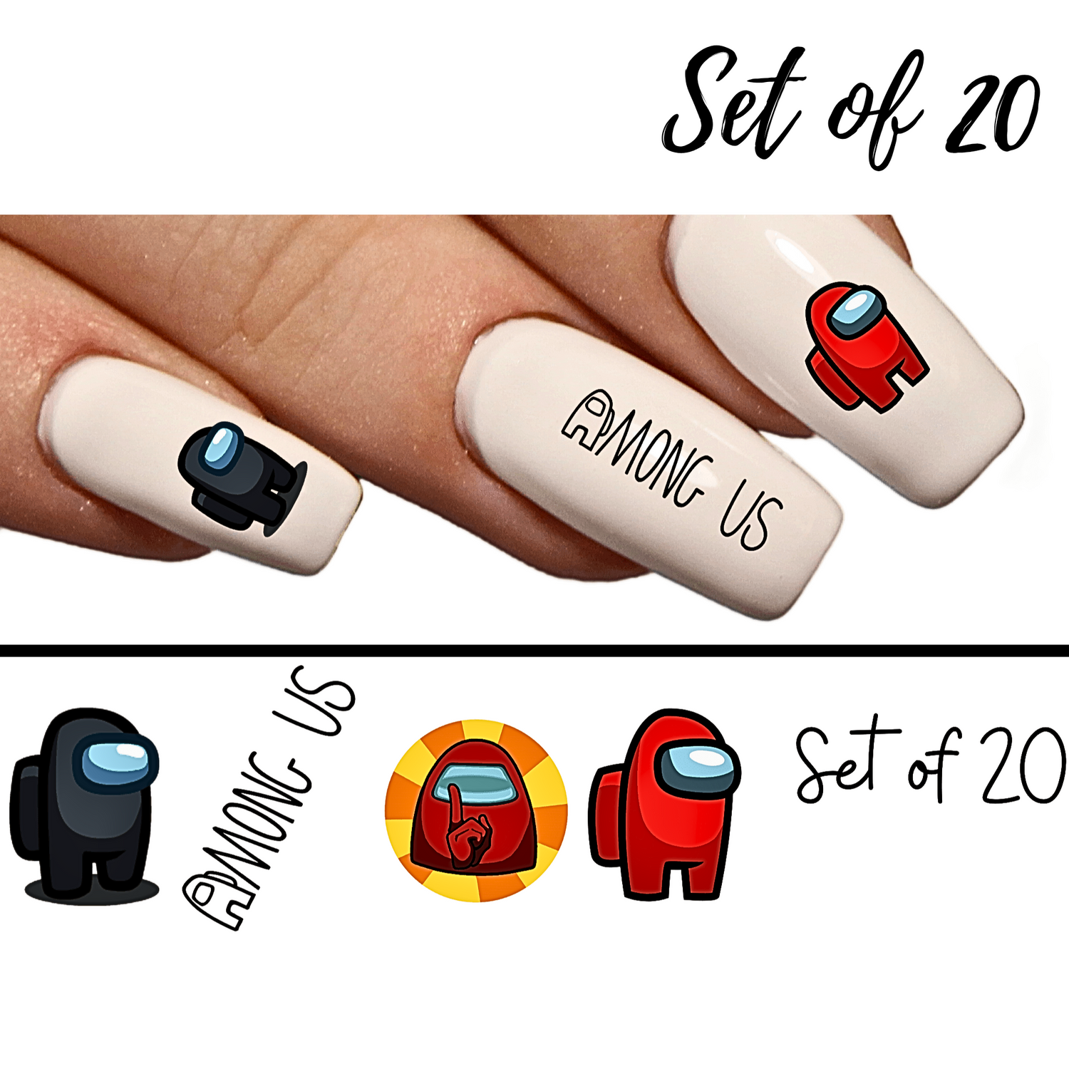 Assorted Nail Stickers Set - Among Us Theme Waterslide Nail Art Decals