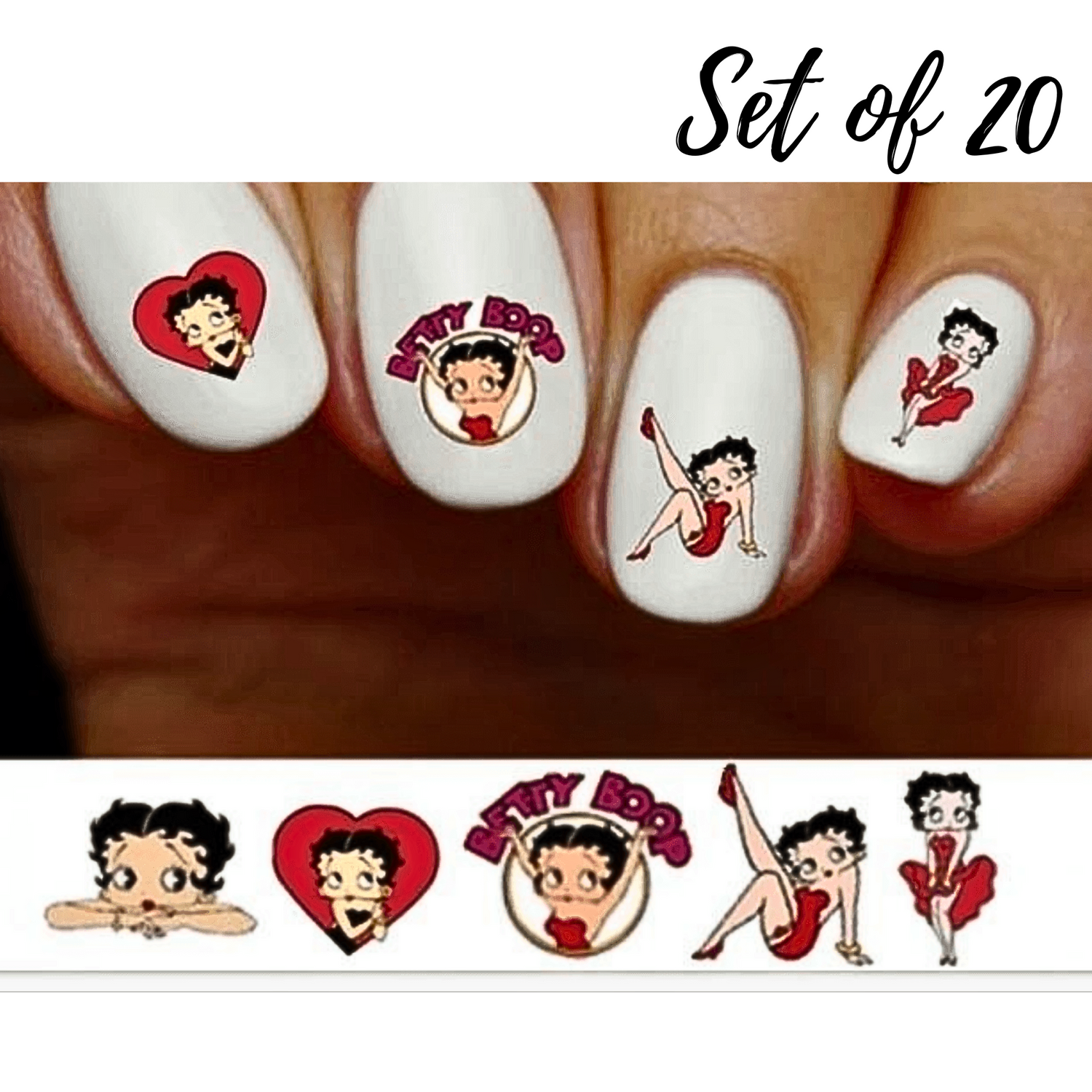 Betty Boop Red Heart Nail Decals Assorted Water Slide Stickers for Stunning Nail Art