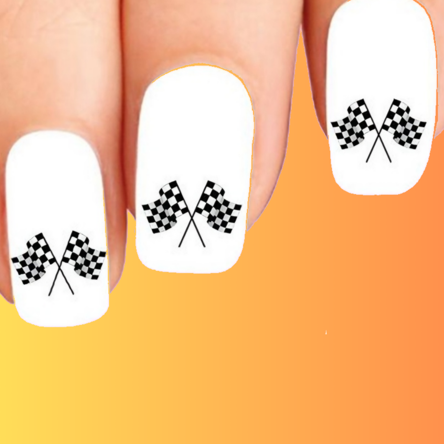 Checkered Car Racing Flags Set of 20 Waterslide Nail Decals