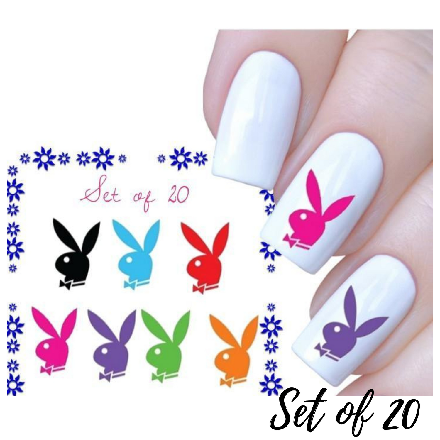Colorful Playboy Bunny Set of 20 Waterslide Nail Decals