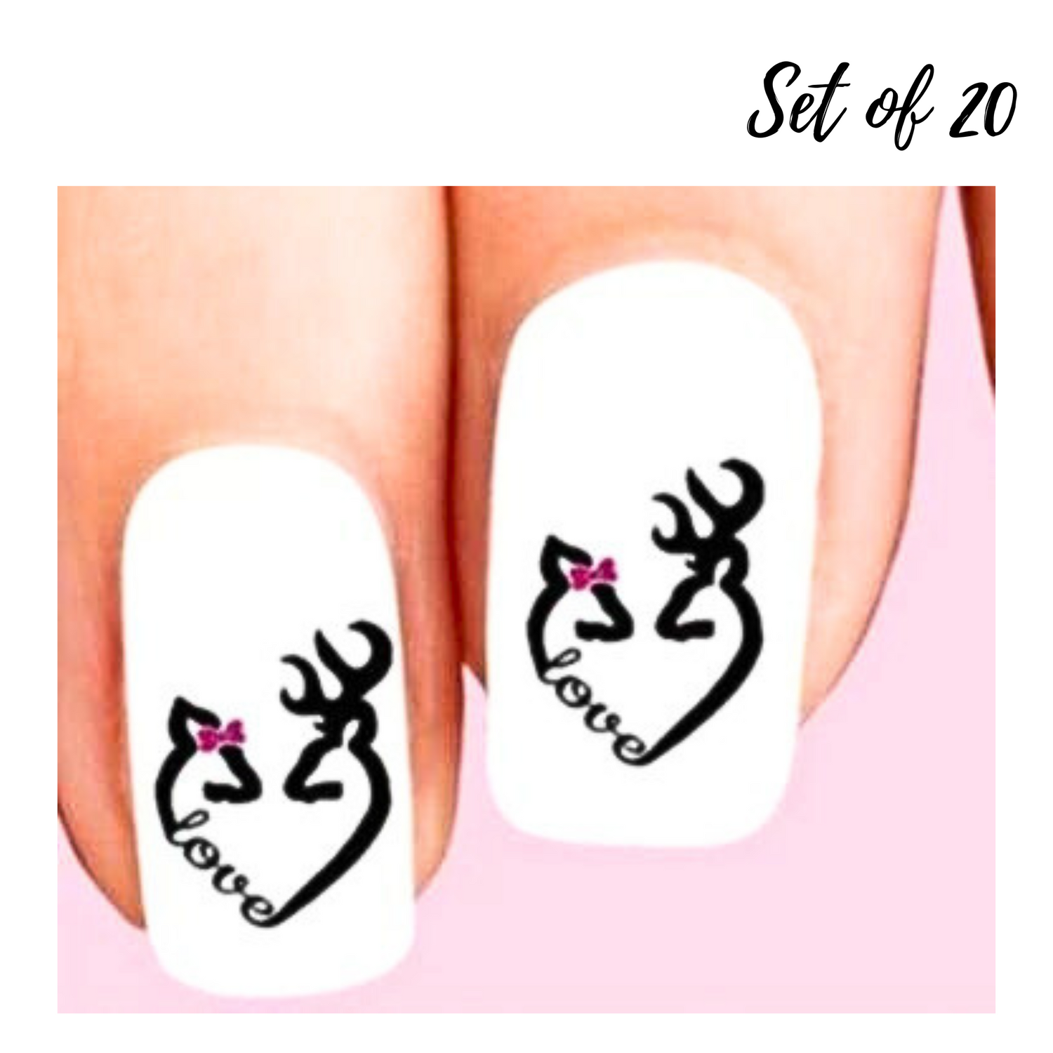 Deer with Heart Nail Stickers Waterproof Transfer for Nail Art