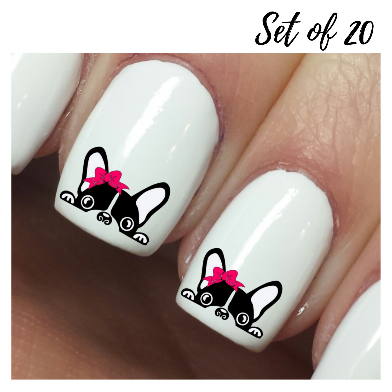 Cute Puppy Nail Art Stickers with Pink Bow, Waterslide Decals, Set of 20