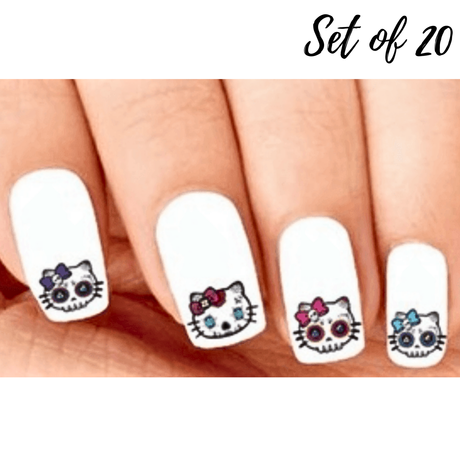 Day of the Dead Sugar Kitty Cat Waterslide Nail Decals - Set of 20