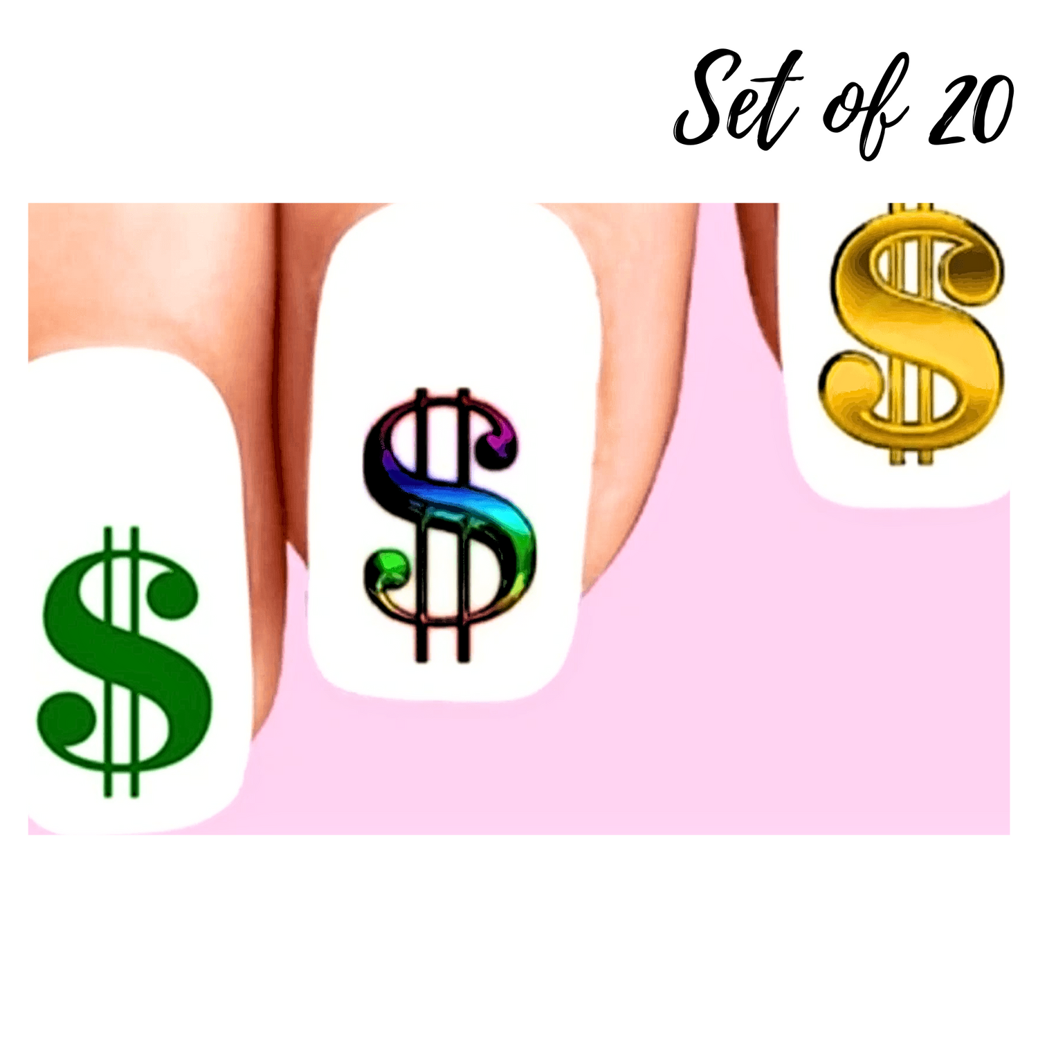 Dollar Money Assorted Set of 20 Waterslide Nail Decals Stickers – Fun Nail Art