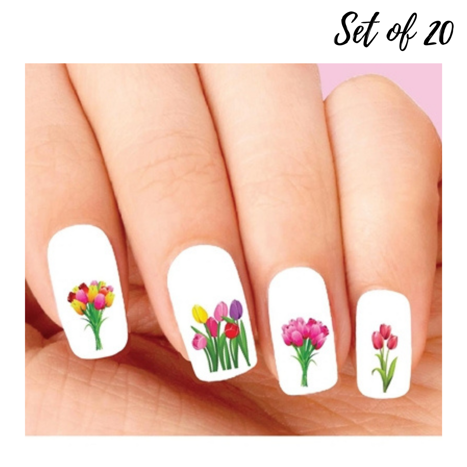 Colorful Assorted Set of 20 Tulip Waterslide Nail Decals for Vibrant Nail Art