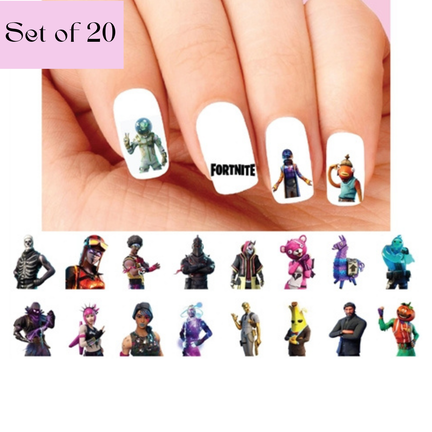 Set of 20 Fortnite Character Nail Decals - Assorted Skins & Outfits for Vibrant Waterslide Nail Art