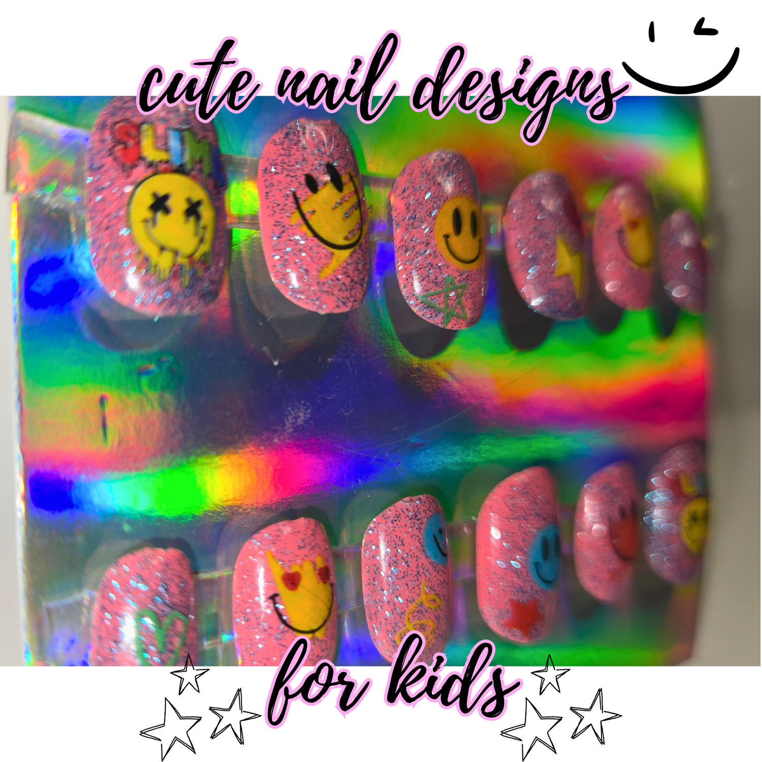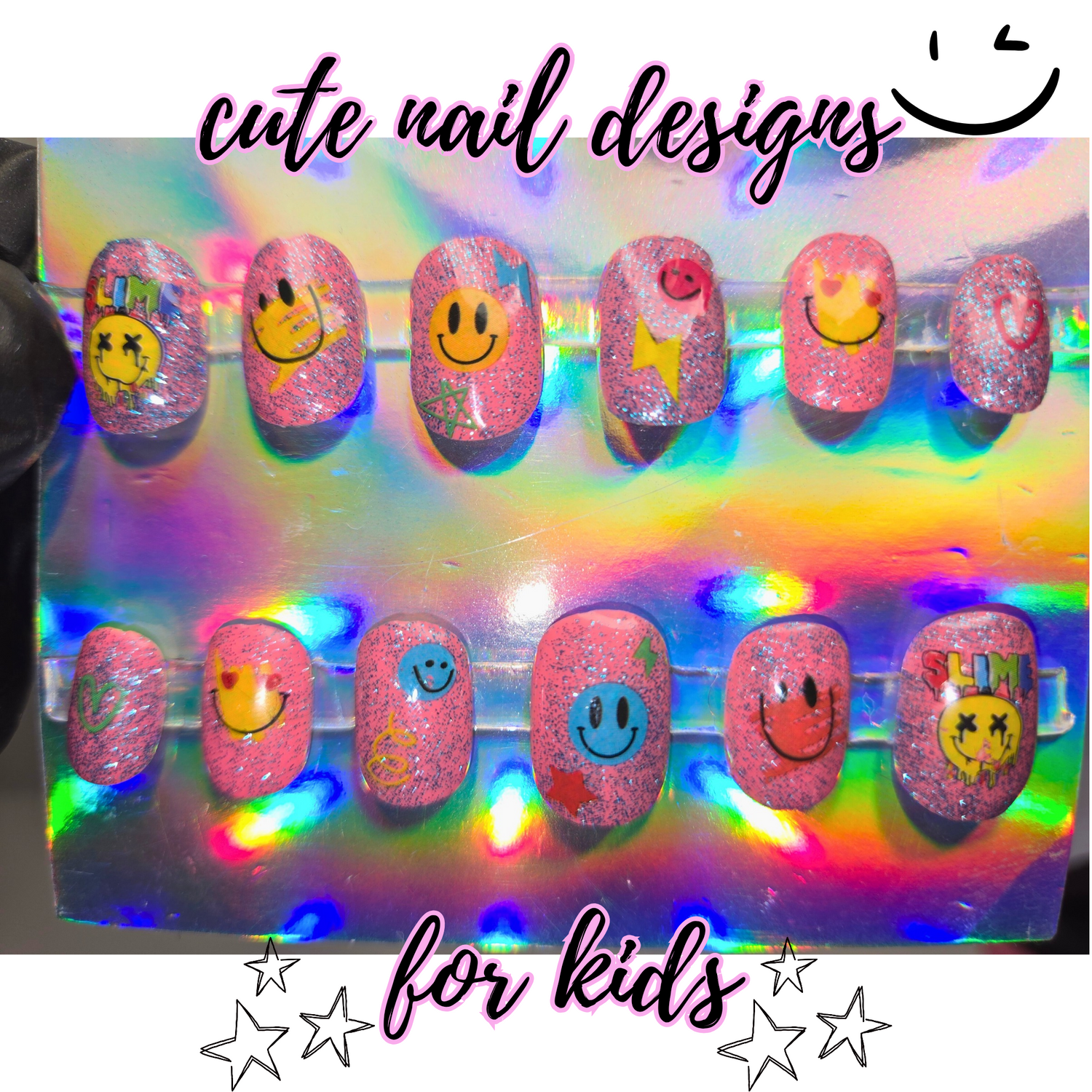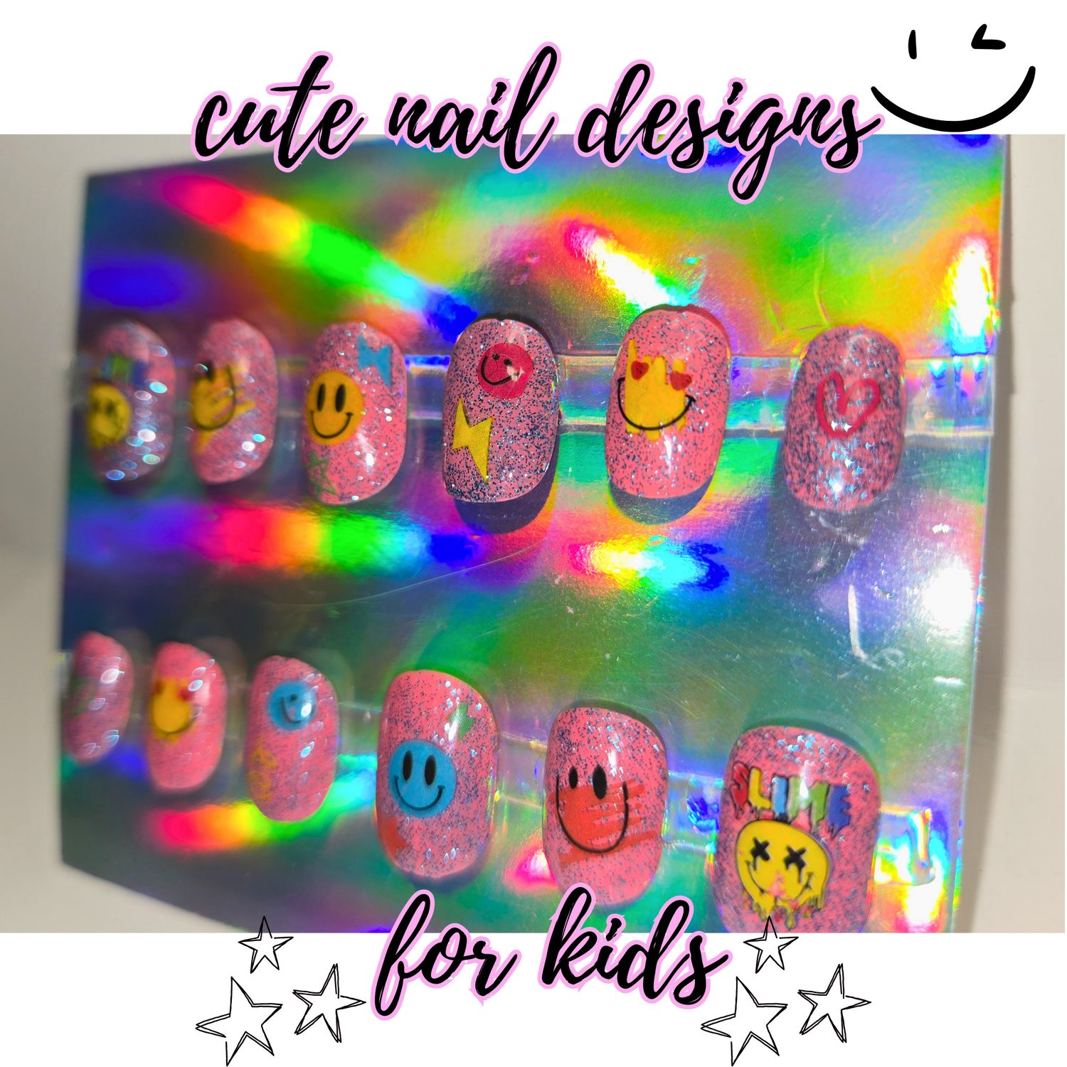 Fun Emoji Smiley Face Press-On Nails for Kids | Colorful Kids Nail Art