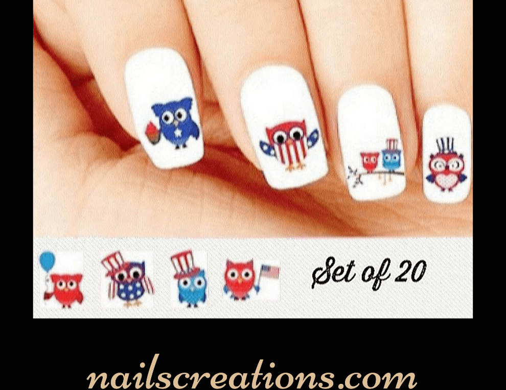 Nail Stickers 4th of July Patriotic Owls Nail Decals Waterslides Nail Decals