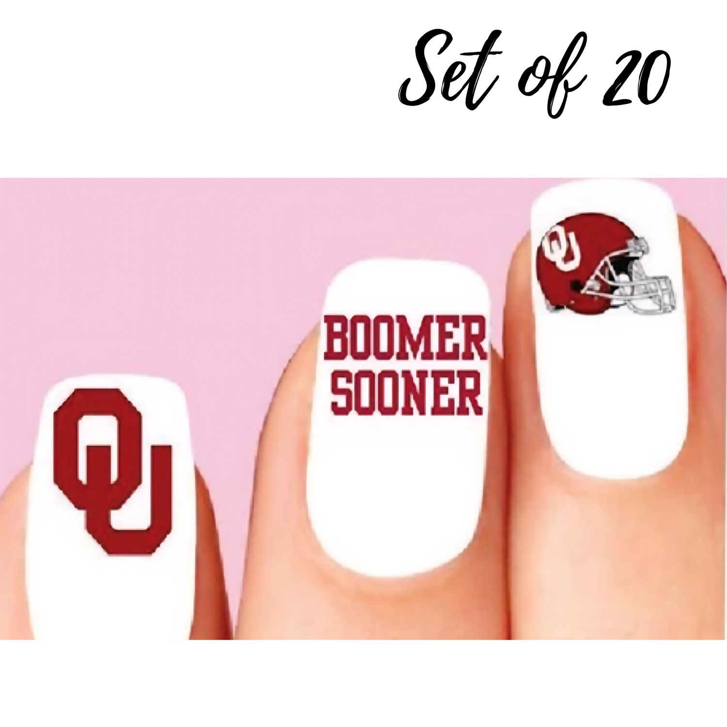 Oklahoma Boomer Sooner Nail Decals - Set of 20 Assorted Waterslide Nail Stickers for Fan & Sports Nail Art