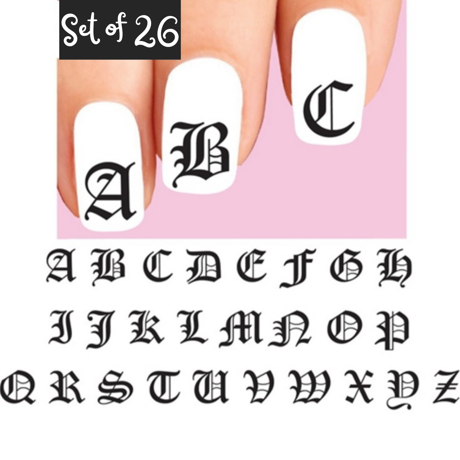 Old English Alphabet Letters Set of 26 Waterslide Nail Decals