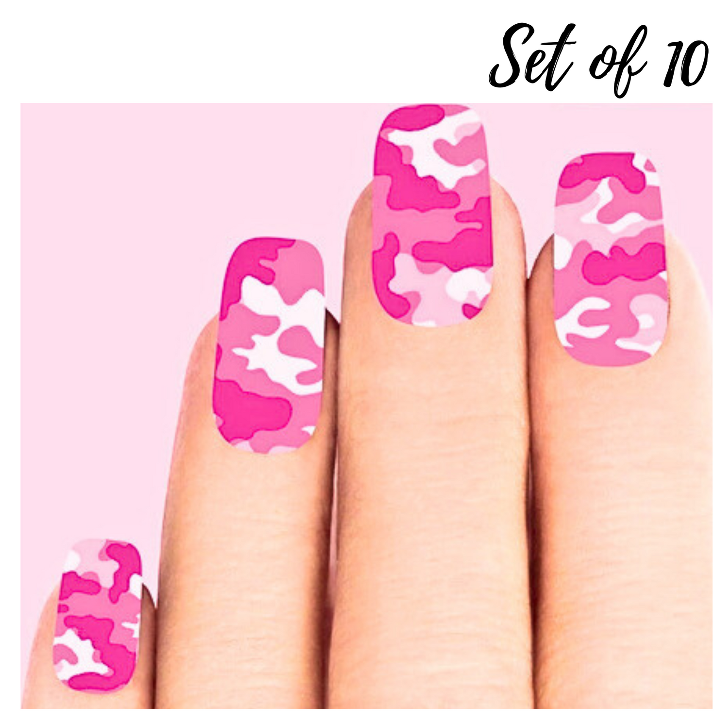 Ultimate Pink Camo Nail Decals: Set of 10 Waterslide Stickers for Stylish Nail Art