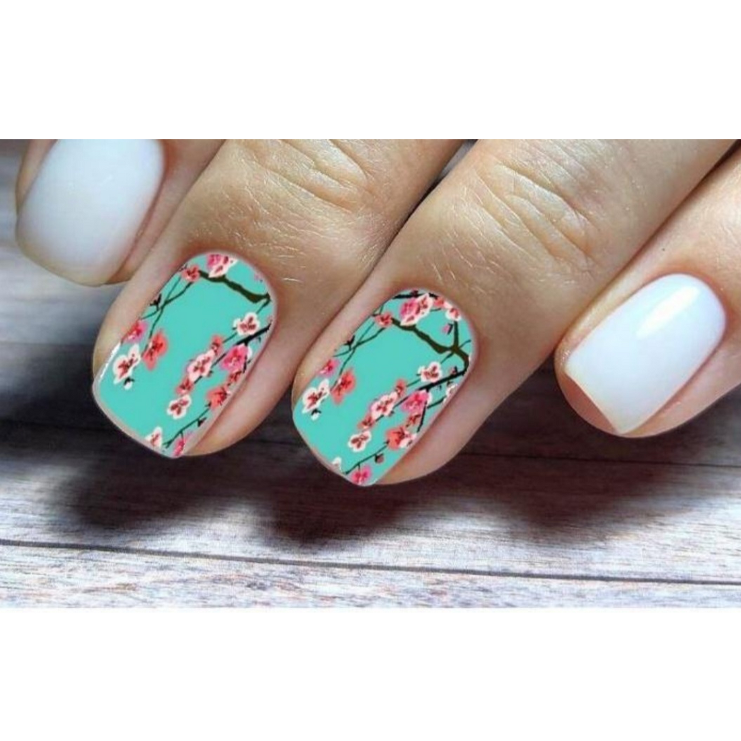Set Teal Cherry Blossoms Assorted Full Nail Decals Stickers Water Slides Nail Art