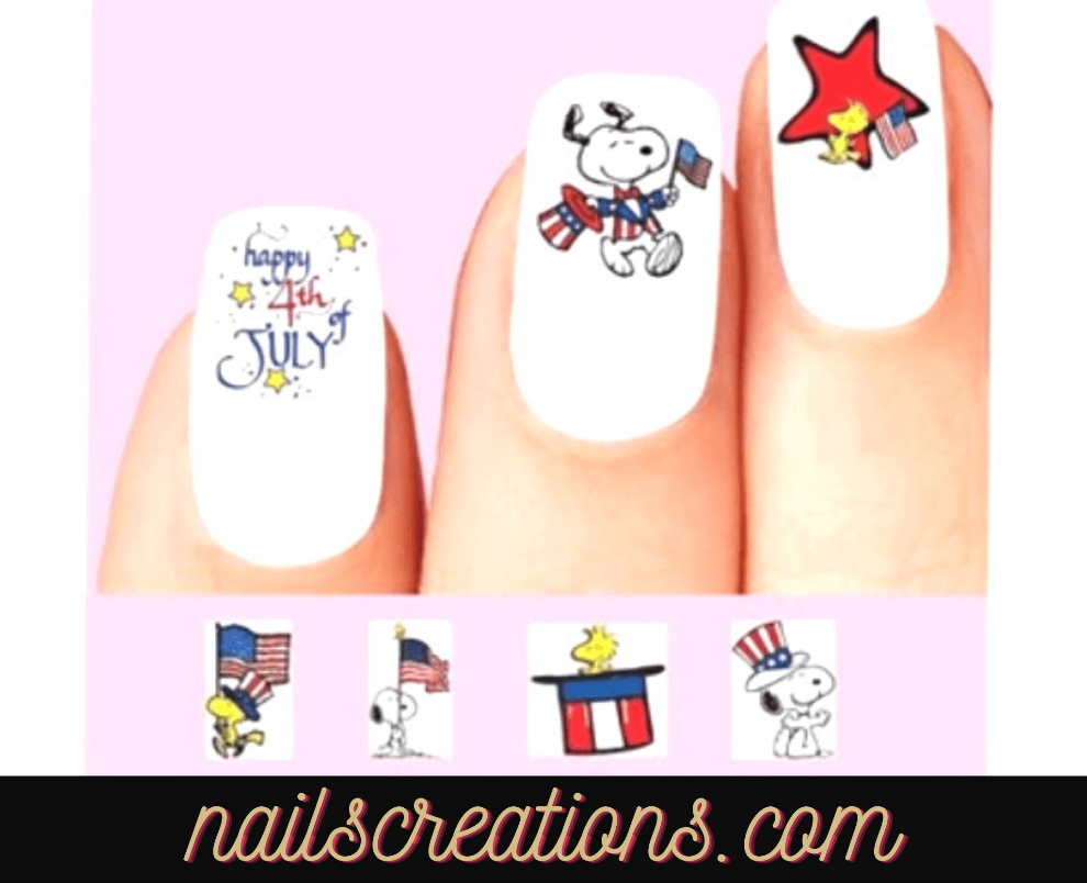 Snoopy Woodstock Happy 4th of July Set of 20 Waterslide Nail Decals