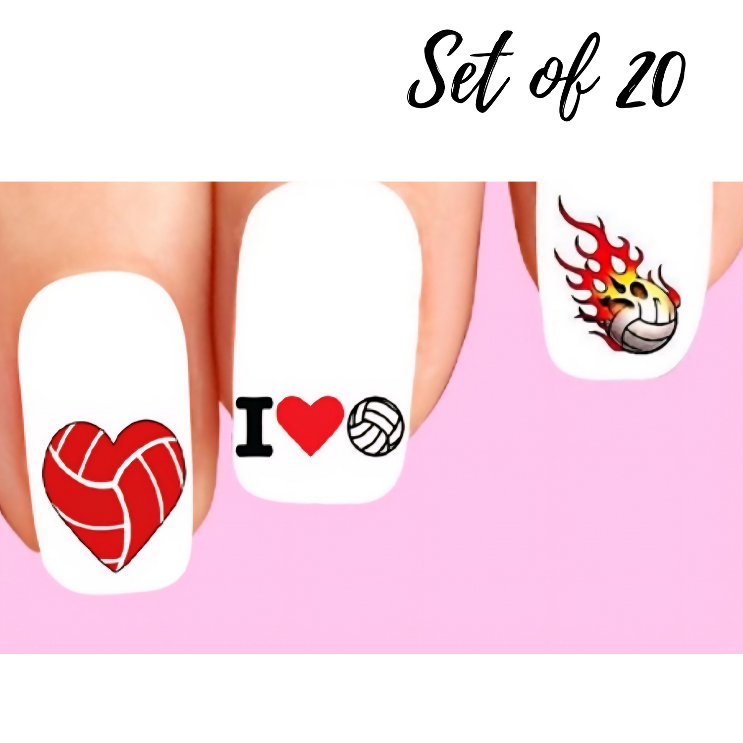 Volleyball with Flames Heart - Assorted 20 Waterslide Nail Decals for Nail Art & Manicure